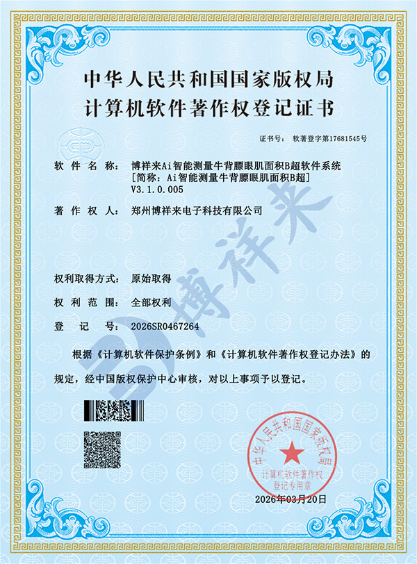 郑州博祥来电子科技有限公司是一家集研发、生产、销售及服务为一体的技术企业,专业研发生产经营兽医影像产品为主,产品包括:兽用B超(猪、牛、羊、马、驴、骆驼等动物用B超)、小动物(宠物)B超、实验动物B超、特种动物B超以及海洋类动物B超等动物用的B超机,兽用活体背膘眼肌B超,动物用的活体采卵仪,动物用DR,宠物DR影像采集系统等兽医影像产品。